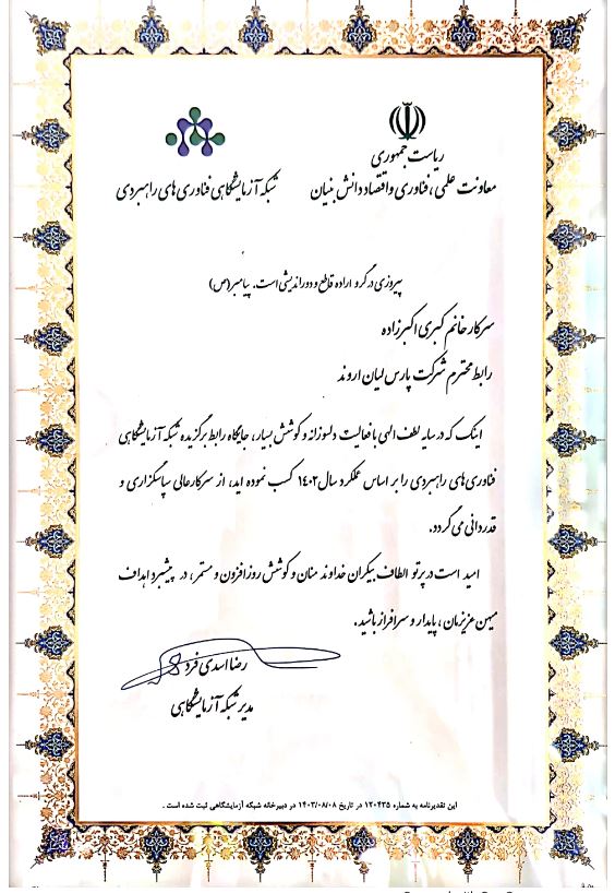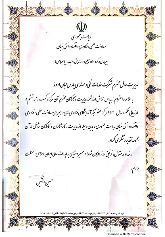 - دریافت تقدیرنامه به پاس رضایت مشتریان و رسیدن به اهداف در سال 1401